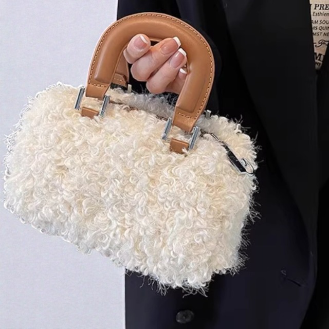 【サイズ】 幅19cm/高さ12㎝/マチ11㎝/持ち手8㎝/重さ0.24㎏ 【カラー】 アイボリー/ブラウン/ピンク/モカ/ベージュ/ブラック/チョコレート 【商品のポイント】 ・ふわもこボア素材で季節感と柔らかさをプラス ・レザー調ハンドルが大人っぽく上品なアクセント ・ころんとした立体フォルムで存在感のあるデザイン ・内ポケット付きで使いやすさも◎ ・コーデの主役にも、差しアイテムにもなる万能バッグ 【お届けについて】 こちらの商品は海外店舗より直接発送となる為、 ご入金から2週間〜3週間前後で発送致します。 ◼️注意事項 ・タイミングによっては 商品在庫切れにより 注文をキャンセルとさせていただく恐れもございますので、 予めご了承くださいませ。 ・こちらは輸入品となります。 日本製とは検品基準が異なる為、新品未使用品でも ごくわずかな汚れやほつれがある場合もございます。 ご理解の上、ご購入くださいませ。 ・商品の色味は、お手持ちのスマートフォンの 画面によって実物と若干異なる場合がございます。 ・イメージ違いやサイズ等、お客様都合による交換、 返品、キャンセルは対応出来かねます。 ーーーーーーーーーーーーーーーーーーーーーーー ※購入前にこちらをお読みください。 ⇒https://shop.henopua.com/about ーーーーーーーーーーーーーーーーーーーーーーー
