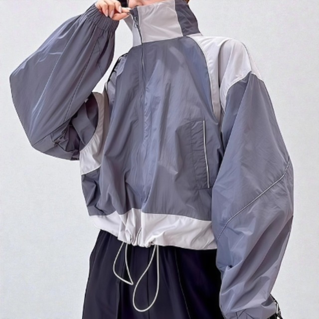 バイカラーオーバーサイズ ナイロンスタンドジャケット 00013