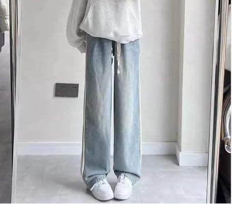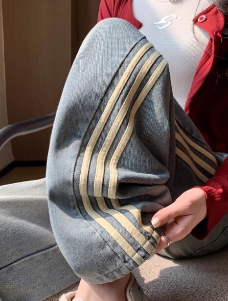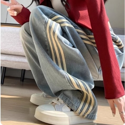 スポーティなサイドラインをあしらった、抜け感のあるデニムワイドパンツ。