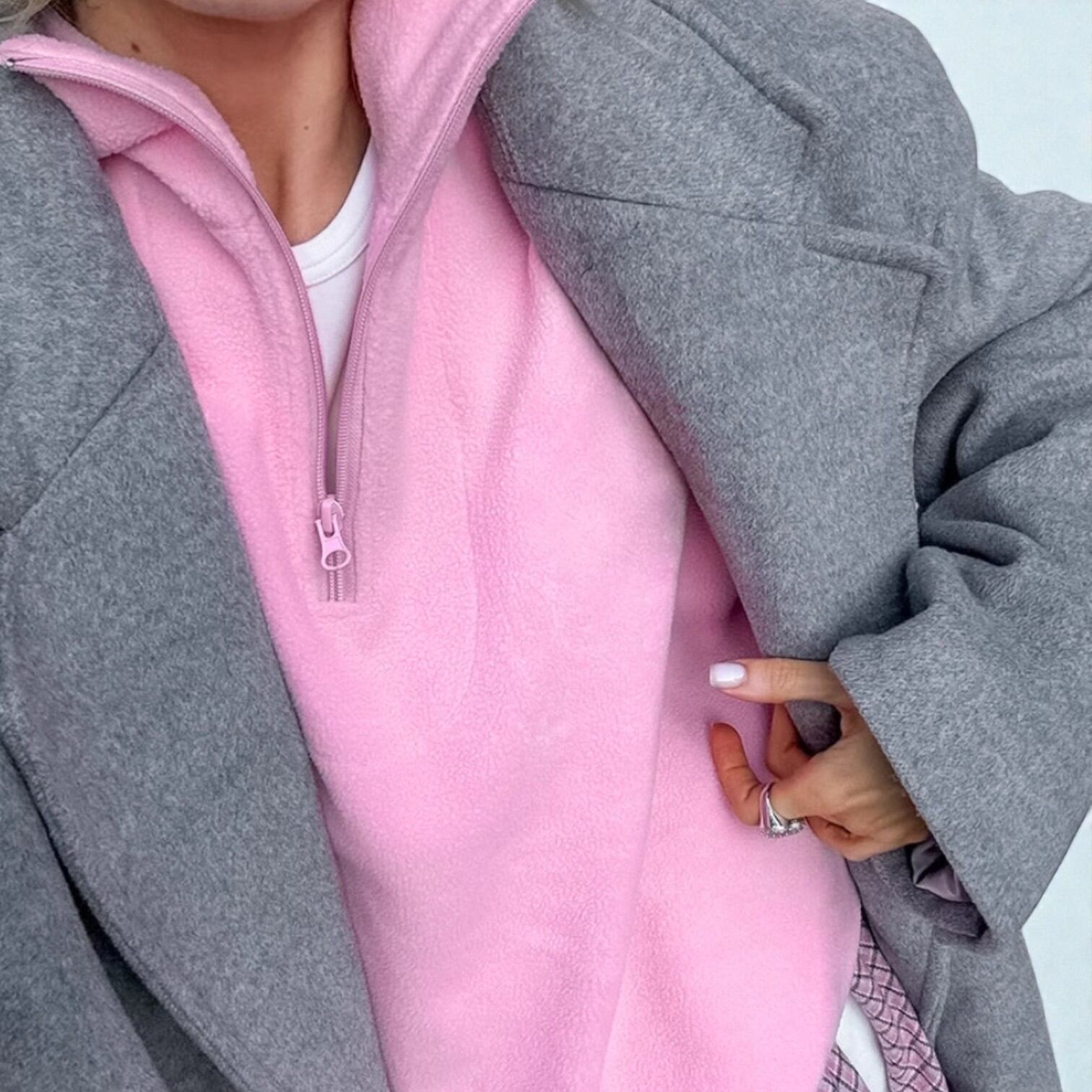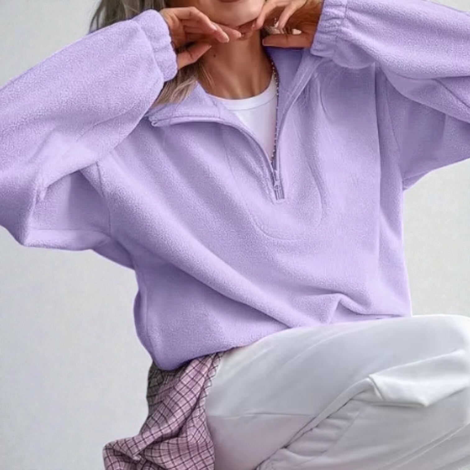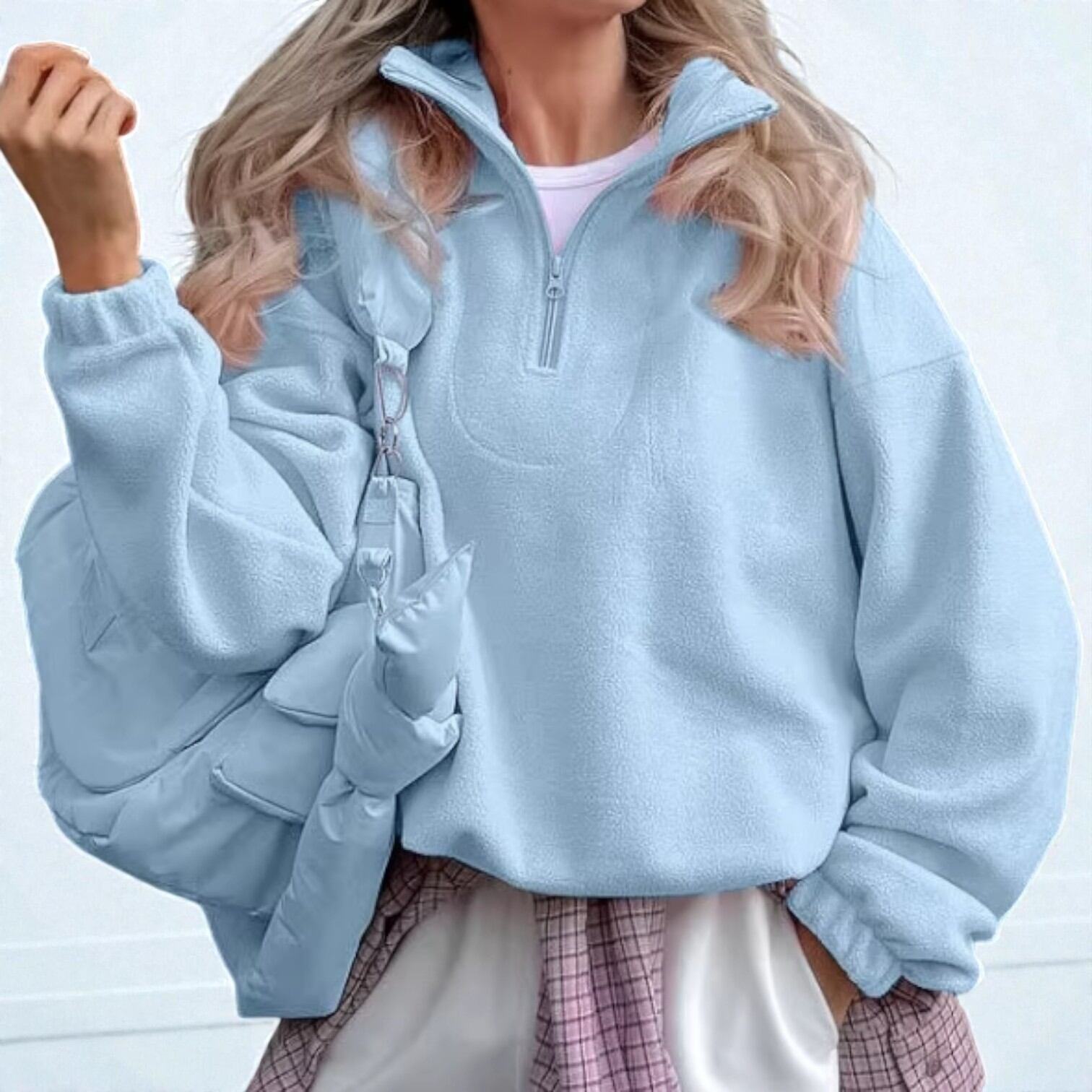 ・トレンドのハーフジップデザインで大人の抜け感を演出