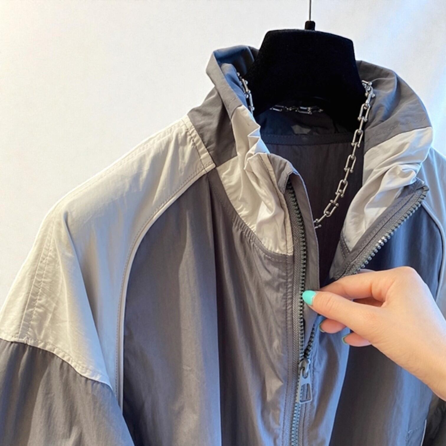 バイカラーオーバーサイズ ナイロンスタンドジャケット 00013