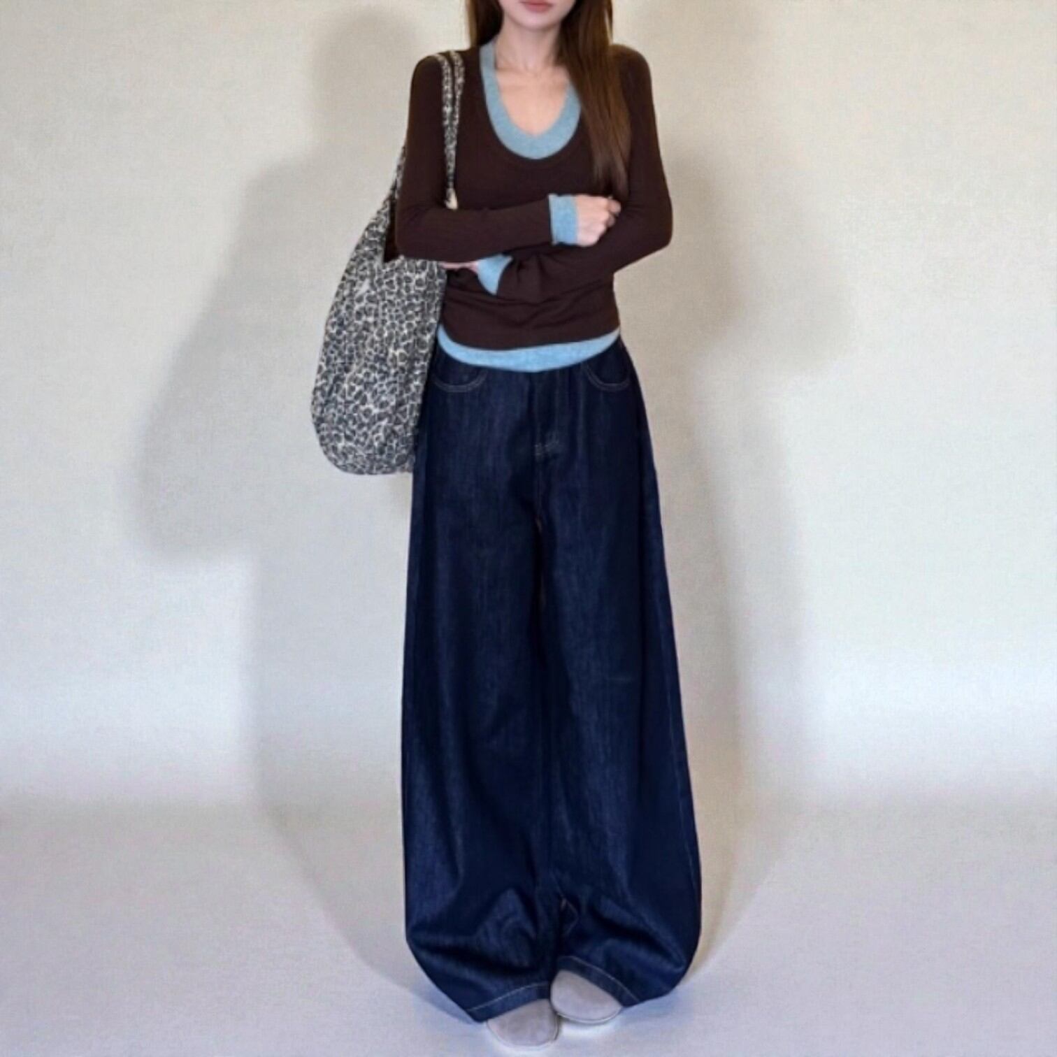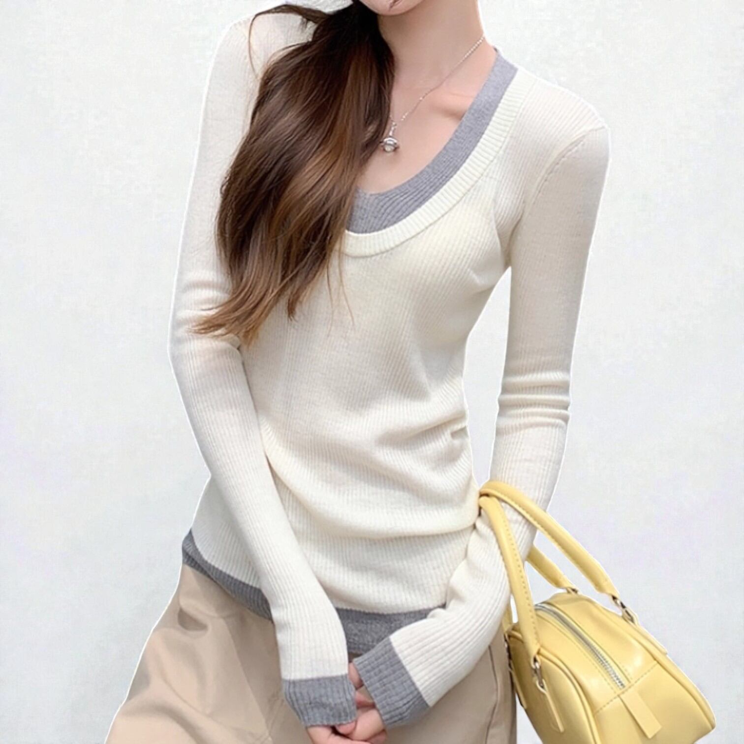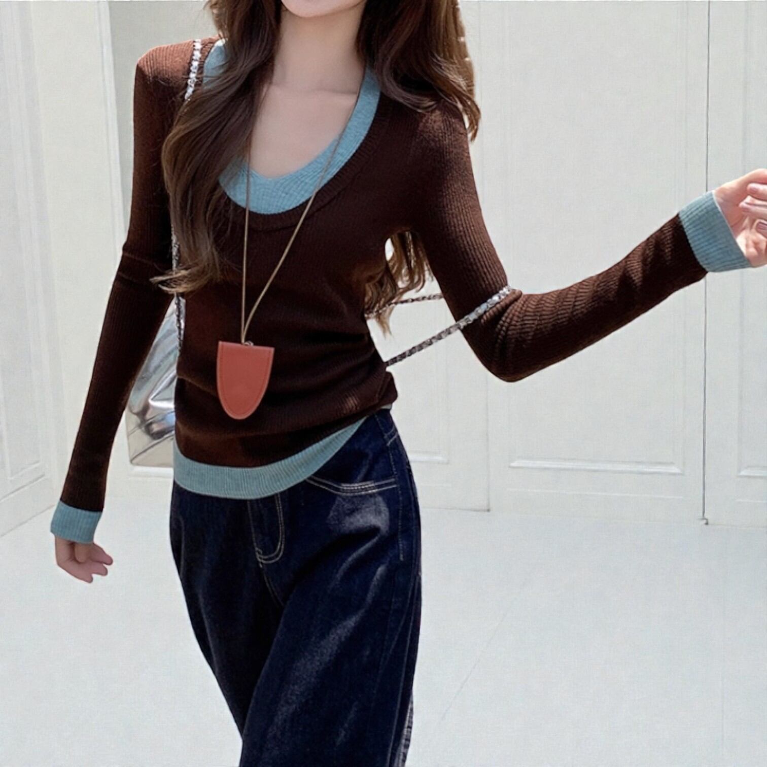 ・首元&袖口&裾の配色がアクセント