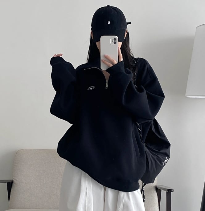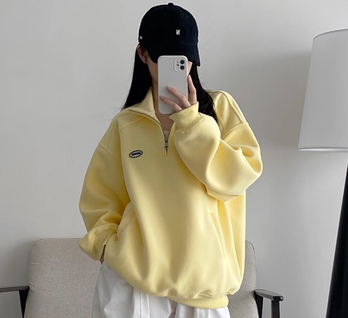 季節の変わり目から真冬まで重宝する、ハーフジップデザインのスウェット。