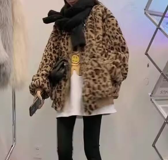 レオパード柄のふわもこボア面と、艶感のあるサテン面の