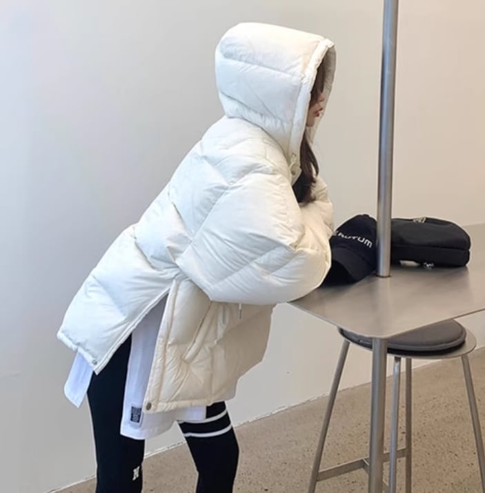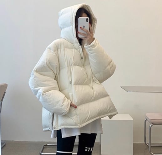 丸みのあるシルエットとたっぷり中綿のボリューム感が魅力のフーディージャケット。