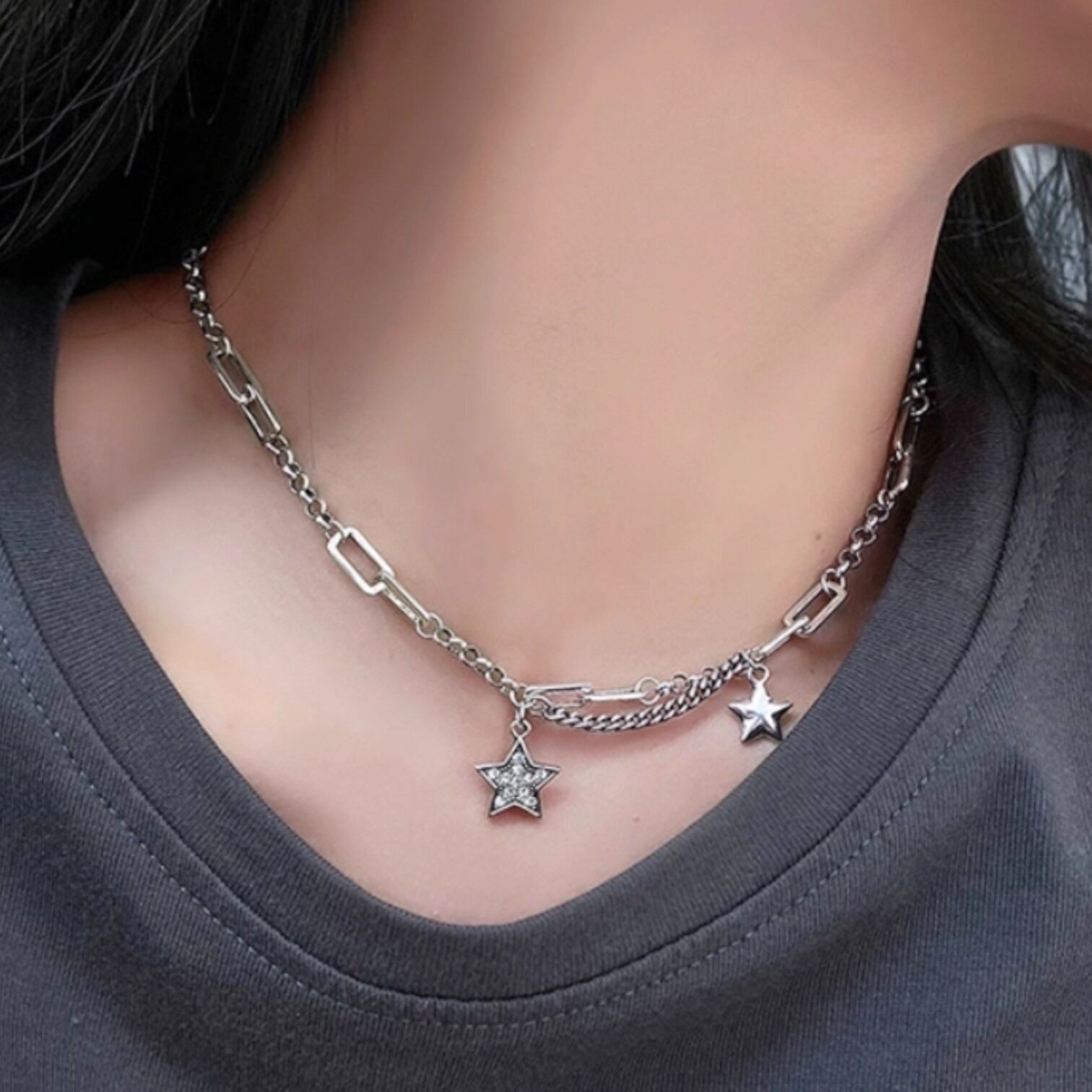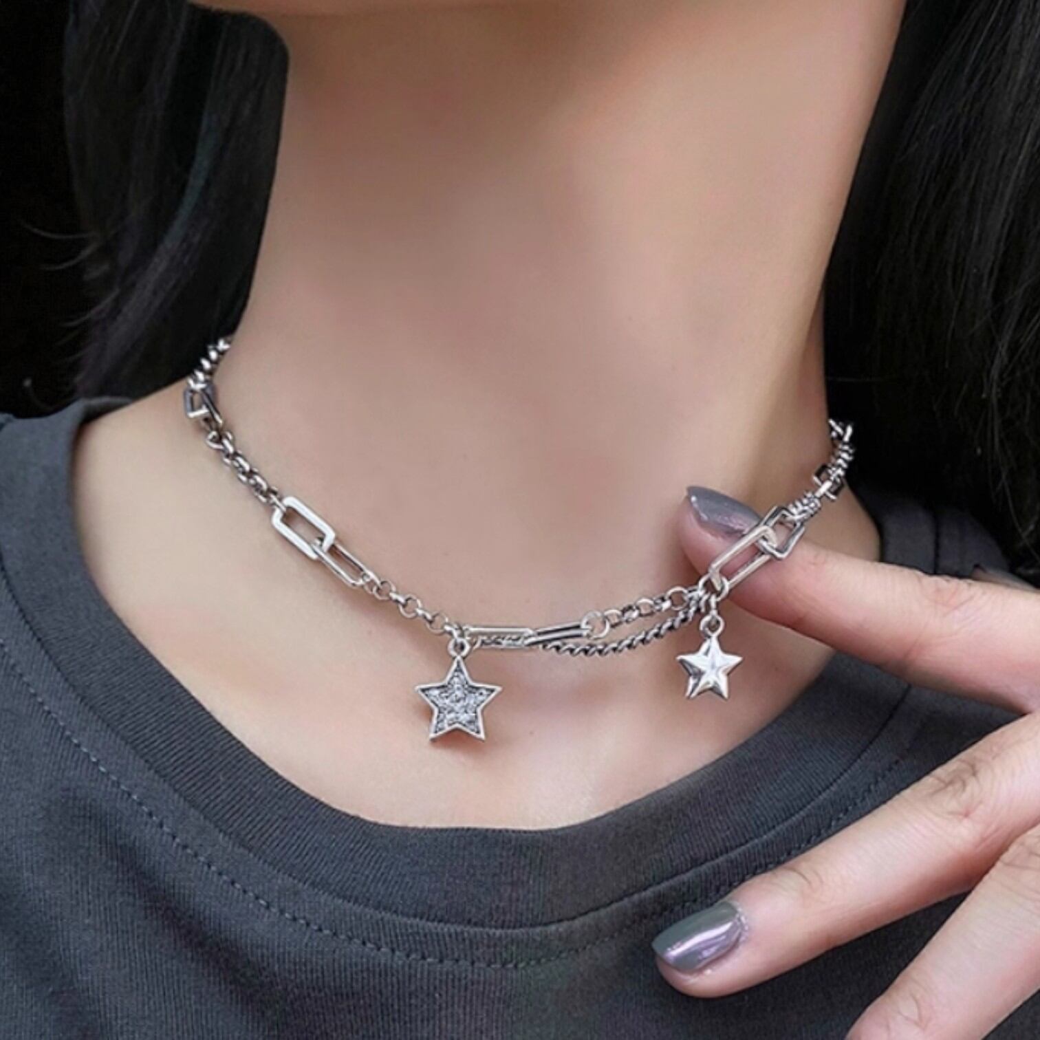 スターモチーフ レイヤードチェーンネックレス 00021